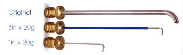 Die zweite Zahl gibt den Durchmesser der Nadel in „Gauge“ an.