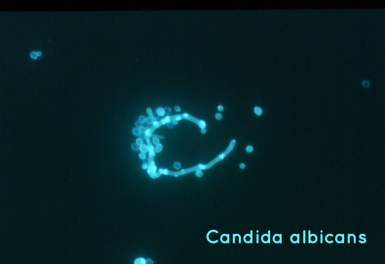 - Kontrastierverfahren: Hellfeld, Auflicht-Fluoresenz (Farbstoff: Mykoval)
